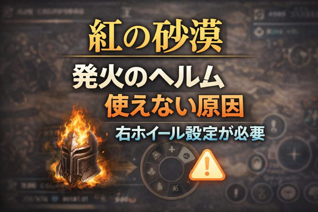 『紅の砂漠』では、特殊装備「発火のヘルム」の使い方が分かりにくく、発動できないと感じるプレイヤーが出ています。コマンド入力だけでは発動せず、事前の設定や条件が必要な仕様について、実際のプレイ情報をもとに整理します。