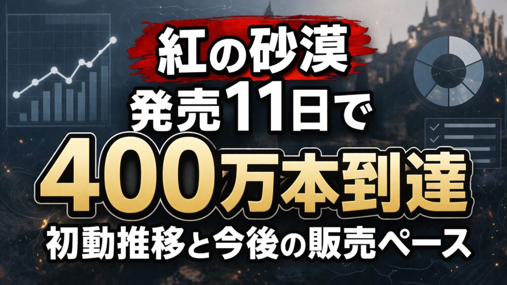 『紅の砂漠』が発売から11日で累計400万本を突破したことが明らかになりました。初日200万からの急伸が話題となる一方で、その後の販売ペースについては見方が分かれています。実際の推移データをもとに、今後の伸びについてさまざまな反応が集まっています。