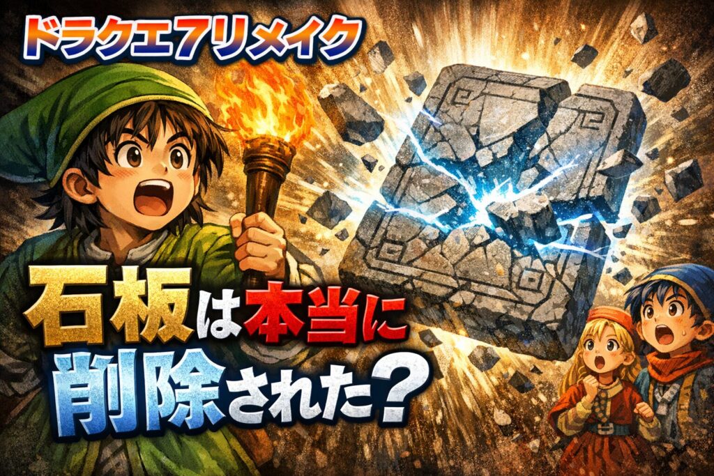 ドラクエ7リメイクの体験版を巡り、「石板が削除されたのでは?」という声が広がっています。過去に行けない仕様や台座の数を巡る混乱から、不安や誤解も生まれているようです。体験版ならではの制限を踏まえつつ、実際に何が変わったのか、反応を整理します。