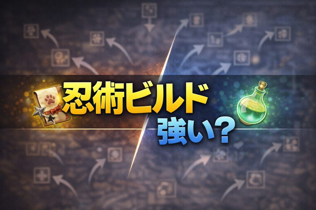 幻術や陰陽術を組み合わせたビルドが強力とされる一方、近接主体の殴り忍の難しさを指摘する声も見られます。