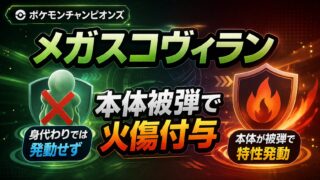 【ポケモンチャンピオンズ】メガスコヴィラン 身代わりでは特性発動せず本体被弾で火傷付与